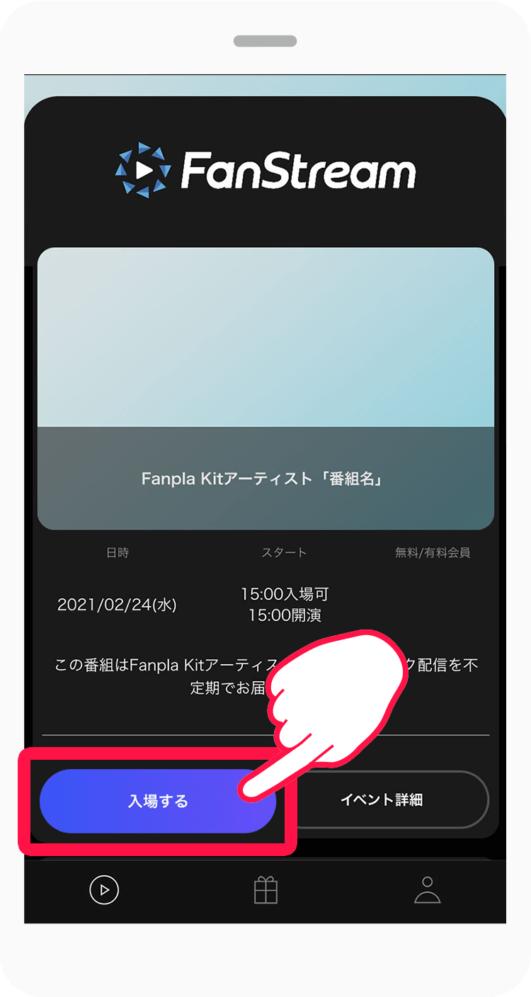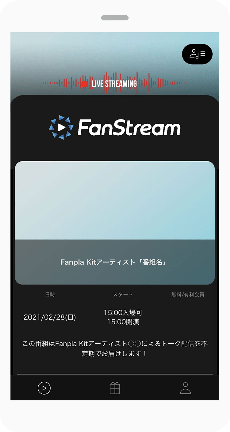 専用アプリ「FanStream」で会員限定生配信を視聴できます。