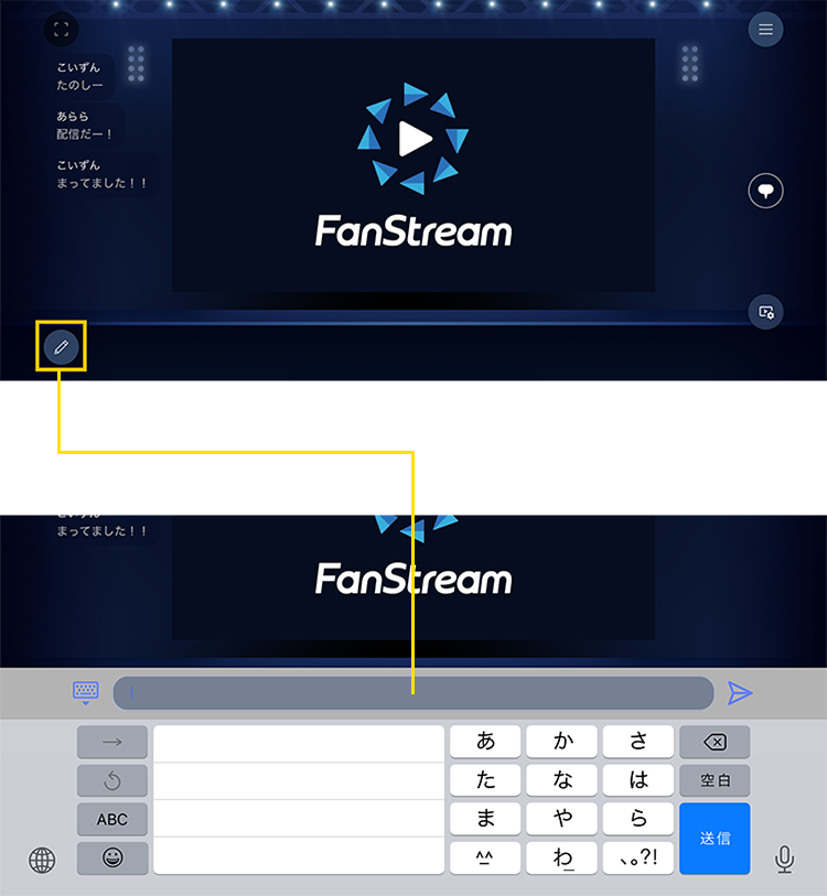 コメント下のペンアイコンを押すとフォームとキーボードが表示されコメント入力・投稿ができます