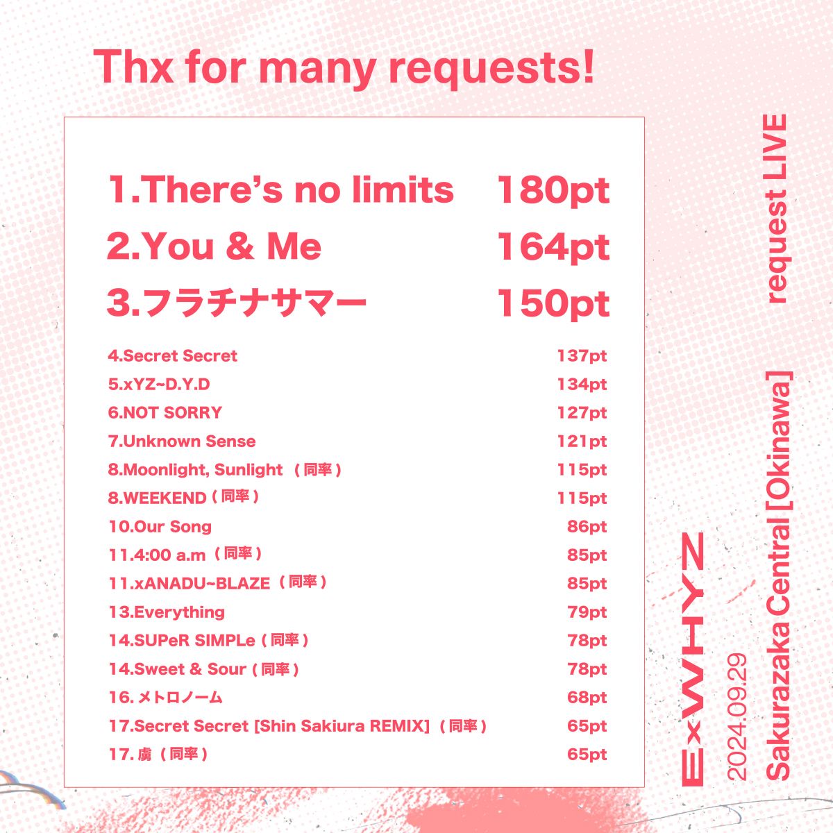 2024.09.29 xYZ only Futura after party request LIVE ランキング結果