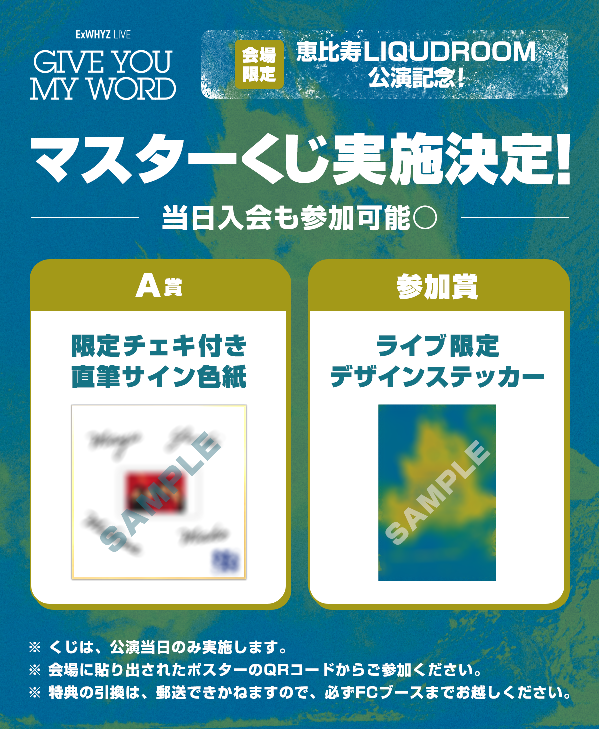 『ExWHYZ LIVE ‘GIVE YOU MY WORD’』会場限定FC限定”マスターくじ”の実施が決定いたしました!